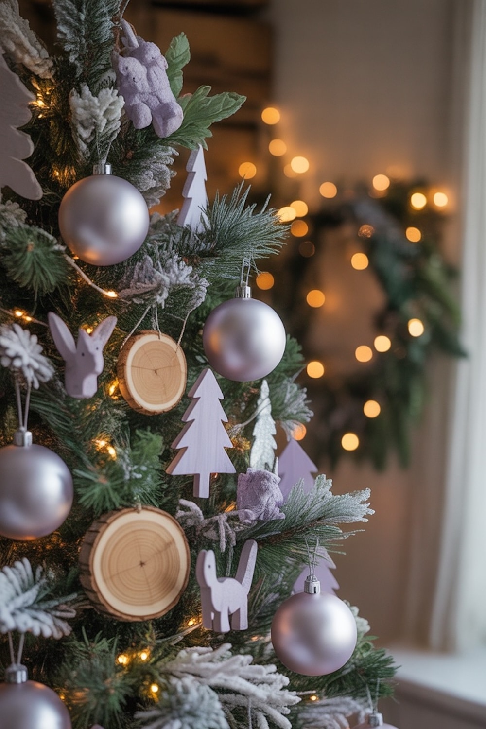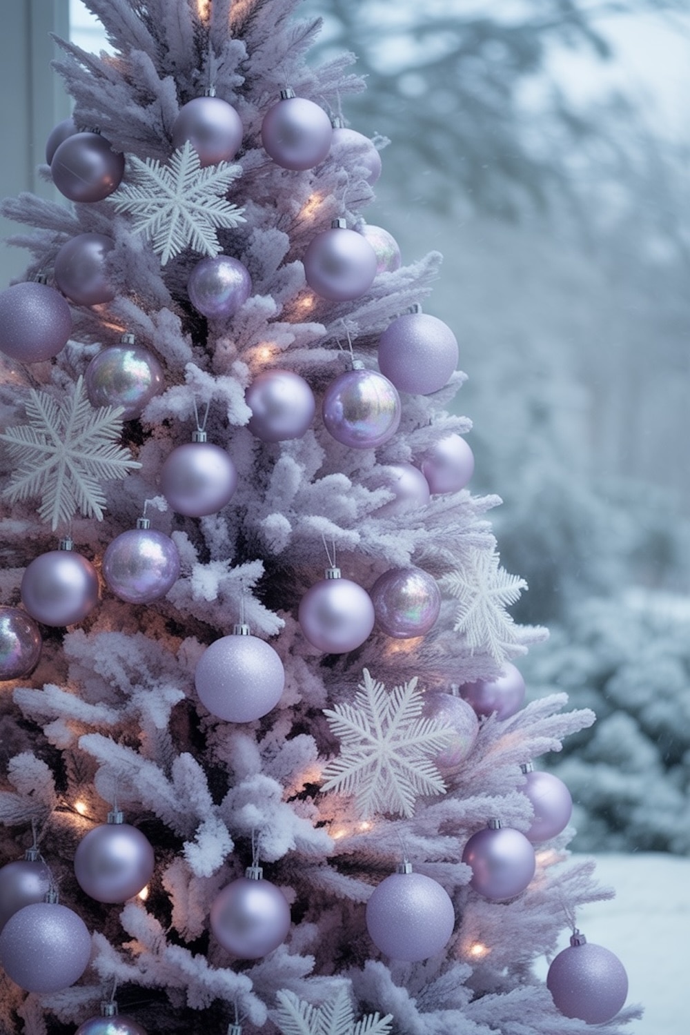 Soft. Dreamy. Romantic. This is the tree for people who want something whimsical and calm — not loud.  Lavender ornaments mixed with frosted whites, snowflake garlands, and silver accents that catch the light like freshly fallen snow.