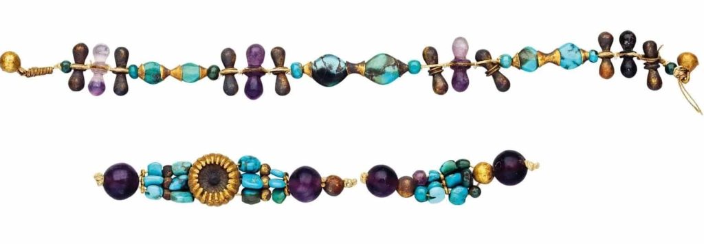 Some of the oldest examples of its use in jewelry, are two beaded amethyst bracelets found by archeologists in the tomb of the 1st Dynasty’s King Djer. This find was dated to be from around 3000 BCE (5,000 years ago). These are also on display at the “Egypt Museum in Cairo”.